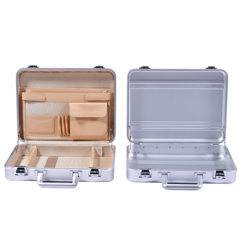 חם למכור למעלה איכות במפעל כסף יצוק סגסוגת 100% אלומיניום נספח מקרה אלומיניום המזוודה קשיח מקרה Slim נספח מקרה