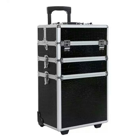 3 ב 1 מקצועי אלומיניום Trolley מקרה עם גלגלים מקצועי איפור מתגלגל עגלת ארגונית מקרה